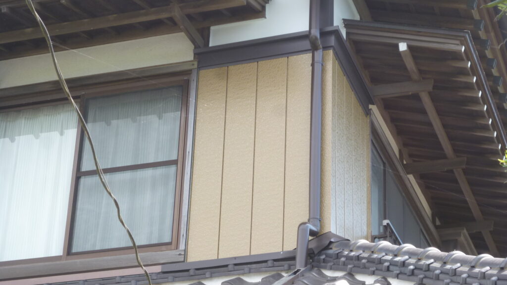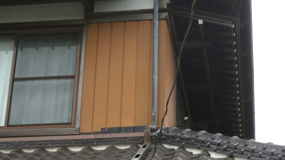 下屋接合部から雨漏りが起きていたため、内部に侵入しないよう水切り等の補修をしました。